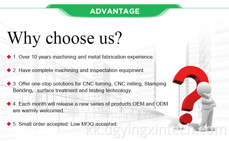 Түрлері: Жедел прототиптеу, Брошинг, БҰРҒЫЛАУ, Оюды өңдеу / химиялық өңдеу, Лазерлік өңдеу, Фрезерлеу, Басқа механикалық қызметтер, Айналдыру, Сым EDM